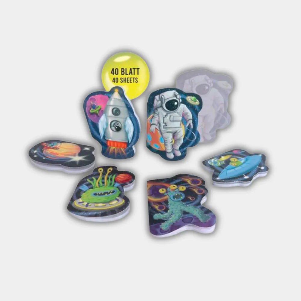 Mini Bloc de Notas "Aventura Espacial" (Formas Troqueladas) | Astronautas y Aliens