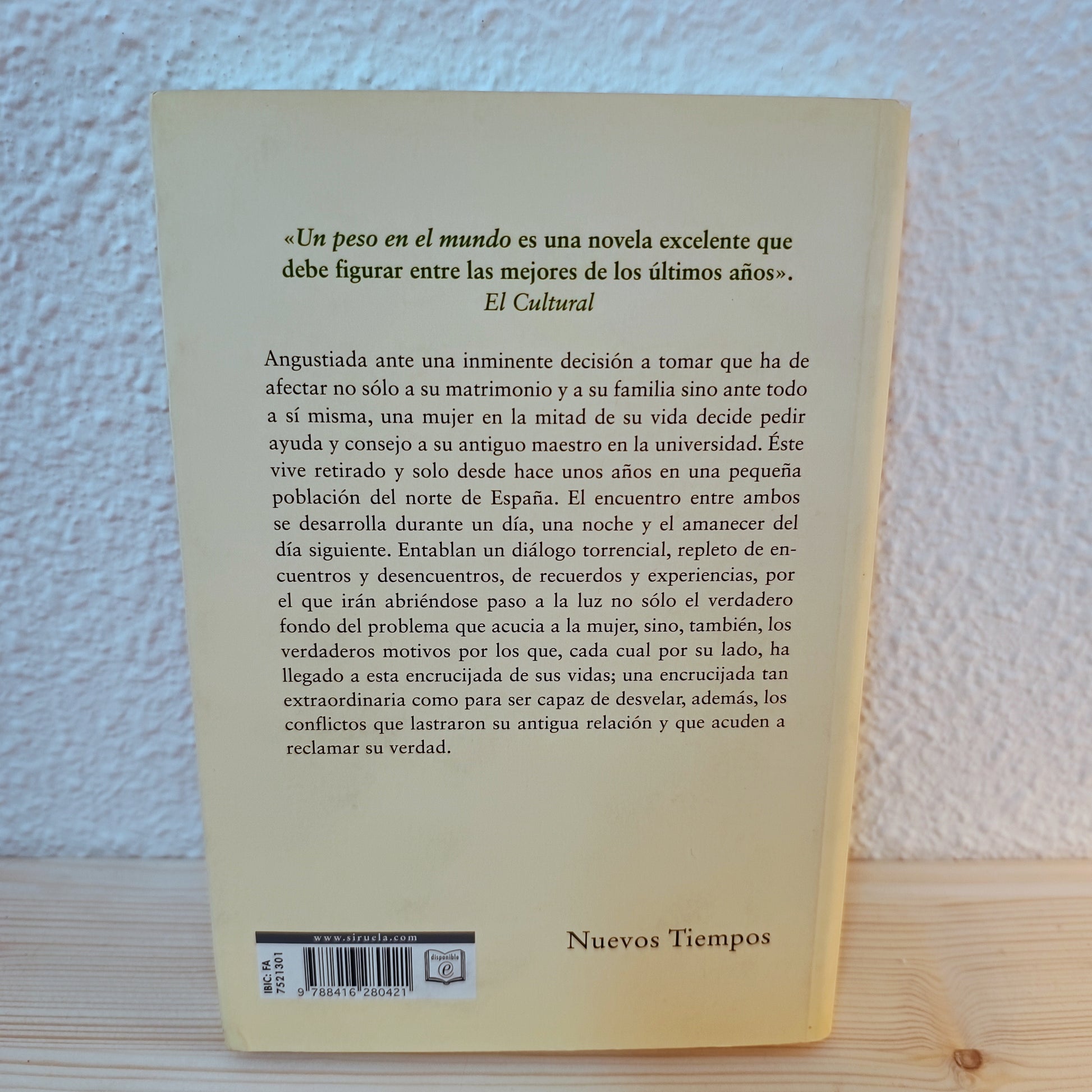 En «Un peso en el mundo», José María Guelbenzu nos sumerge en una intensa jornada de introspección y diálogo que transcurre en apenas veinticuatro horas. La protagonista, una mujer que atraviesa la crisis de la madurez y siente que los cimientos de su matrimonio y su familia se tambalean, decide buscar respuestas en una figura de su pasado: un antiguo maestro universitario que vive retirado en un pequeño pueblo del norte de España.